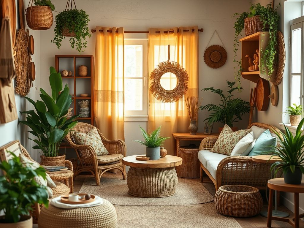 Uzupełnij przestrzeń o naturalne dodatki, takie jak plecione kosze, ceramika oraz ręcznie robione makramy. Te elementy nie tylko wprowadzą do wnętrza harmonię, ale także strukturę i głębię, a także ocieplą klimat w pomieszczeniu. Evituj nadmiar dekoracji; skup się na kilku mocnych akcentach, które będą stanowić spójną całość.