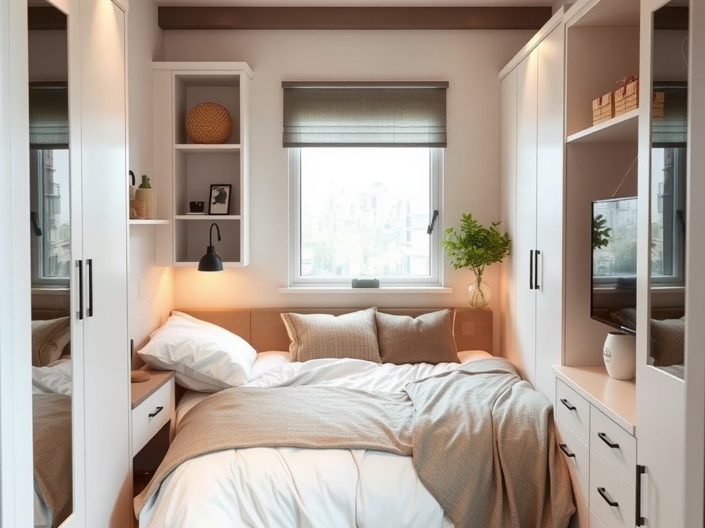 Wykorzystanie przestrzeni pod i wokół łóżka 160 w małej sypialni