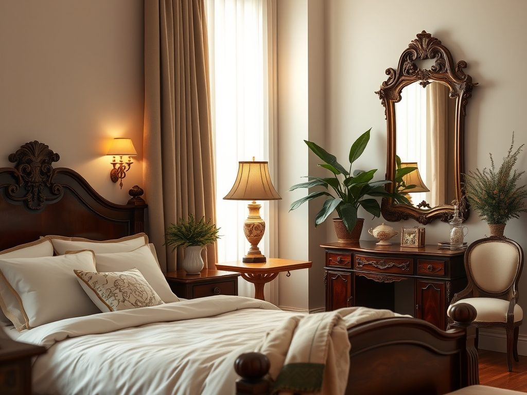 Jakie meble, tekstylia i dodatki są kluczowe dla eleganckiego i komfortowego urządzenia sypialni w stylu klasycznym?