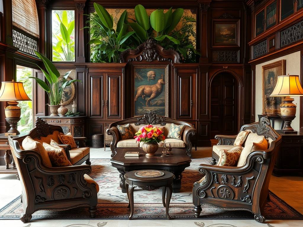 Materiały, meble i tkaniny charakterystyczne dla stylu kolonialnego