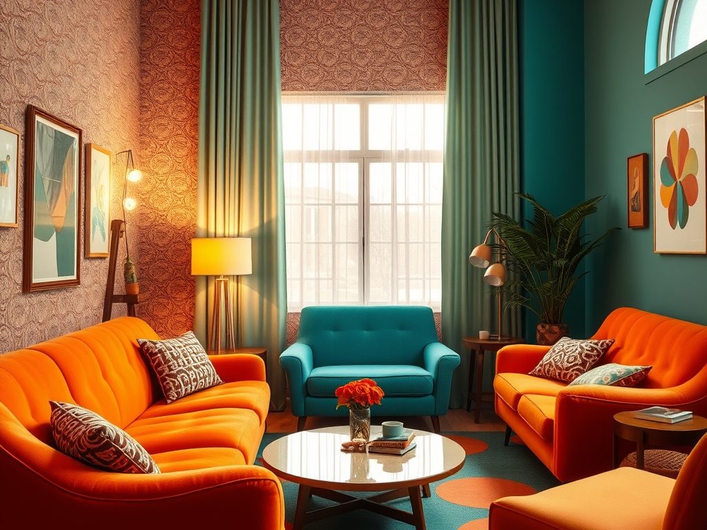 Możesz także wprowadzać różnorodne faktury i wzory, jednak unikaj nadmiernego bogactwa wizualnego. Balansuj intensywność kolorów stosując mocne barwy razem z neutralnymi elementami, co pomaga zmniejszyć intensywność bodźców. Stosując te zasady, tworzysz eleganckie wnętrza w stylu retro, które są funkcjonalne i przytulne.